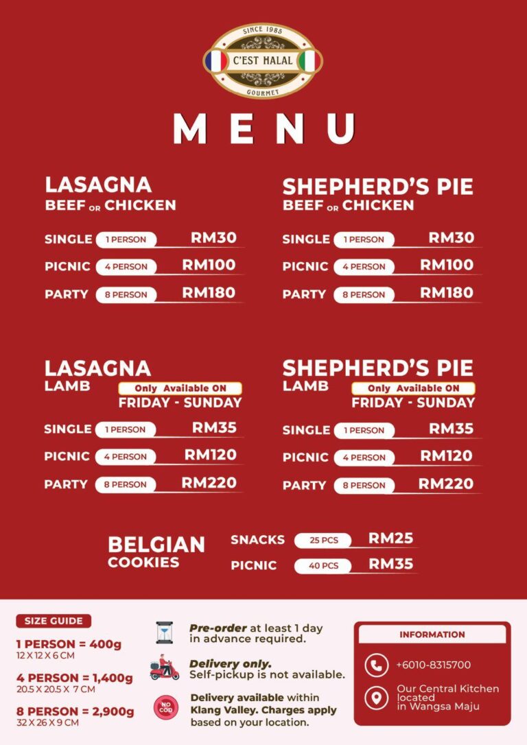 Our Lamb Lasagna or Shepherd’s Pie menu is a special dish from C’est Halal Gourmet, only available on Friday, Saturday, and Sunday. At the moment, it’s not listed on the website and can only be ordered manually via WhatsApp. You can click whatsapp button below.